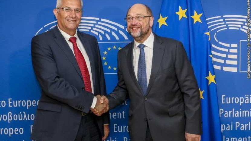 Avrupa Parlamentosu’nun devam etmekte olan Kıbrıs sorunu müzakerelerine destek vermeye hazır olduğunu söyledi. Andros Kiprianu, Kıbrıs sorunundaki son gelişmelerin yanı sıra, hangi koşullar altında AKEL’in çözümü desteklemeye hazır olduğu konusunda Avrupa Parlamentosu Başkanı’nı bilgilendirdi. Kiprianu, yapılan görüşmede, Schulz ile Kıbrıs sorunu, Türkiye’deki durum ve Kıbrıs Türk toplumundaki gelişmeler hakkında fikir alışverişinde bulunduğunu belirtti. Çözüm çerçevesinden bahsederek, olası bir çözümün, AKEL’in geri adım atmasının söz konusu olmadığı, öncesinde üzerinde fikir birliğine varılan ilkelere dayanması gerektiğini vurguladı. AKEL Genel Sekreteri, Martin Schulz’un partisinin ortaya koyduğu tezlerle hemfikir olmasından dolayı duyduğu memnuniyeti dile getirdi.